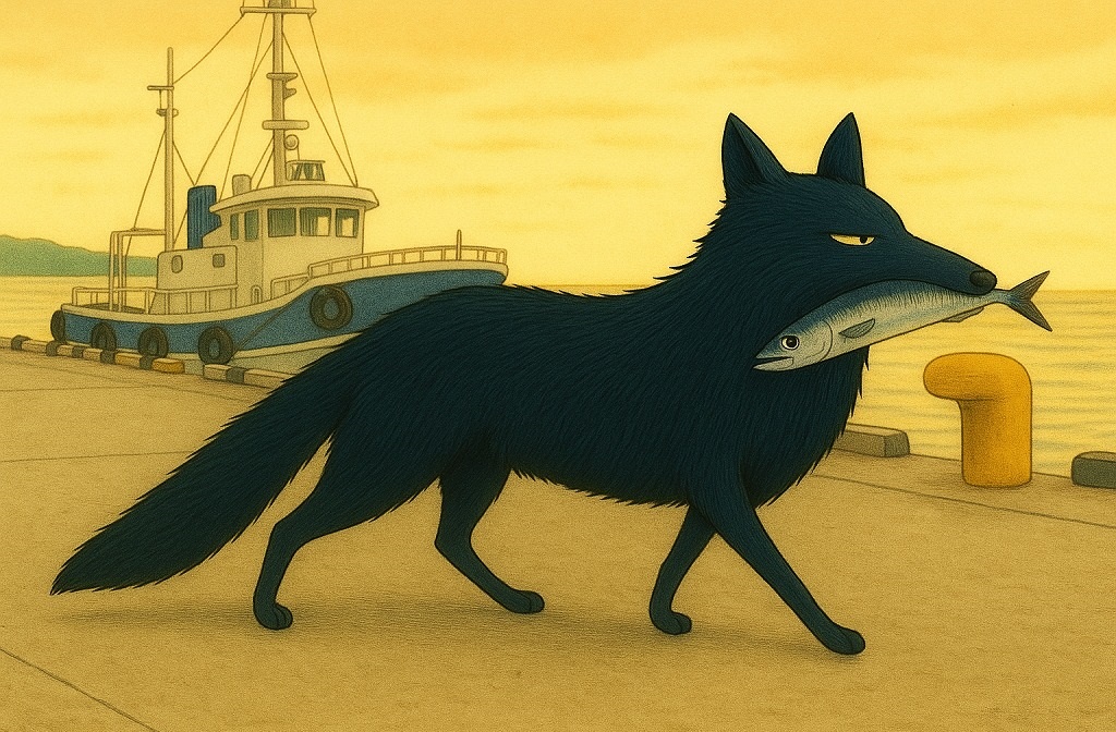 手足の生成精度は高いけど、どうも遠近感がバグる感じやな。とりま、サンマを咥えておるゴンのイラストを生成してみた。