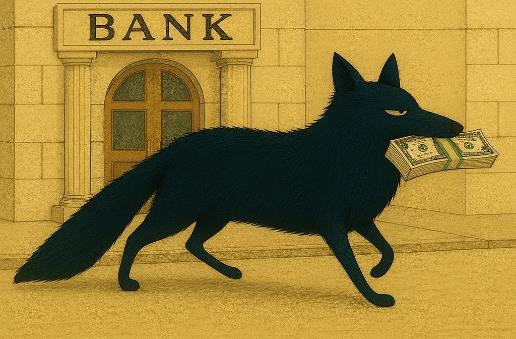 Chat-GPTの画像生成機能は遠近感が苦手みたいだな。とりま、銀行から札束を咥えて逃走するゴンのイラストを生成した。