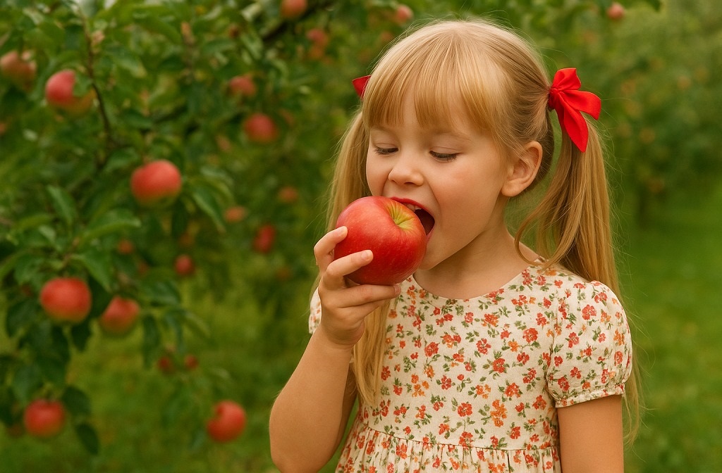 いつも、おやつ替わりに農園のリンゴをつまみ食いしていた。
